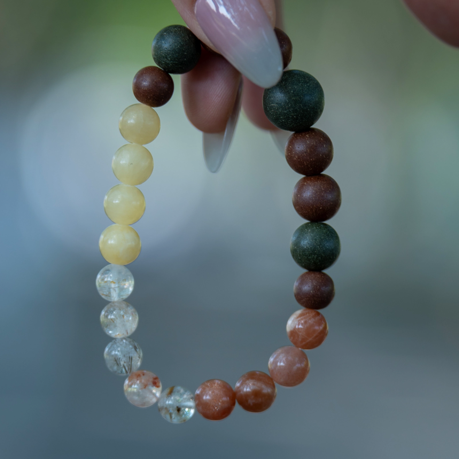 For the radiant soul who lives in color and connection.Yellow Jade spreads joy, Rutilated Quartz turns dreams into action, and Sunstone fuels your fearless energy – all balanced by soothing aromatic beads made for creative spirits.