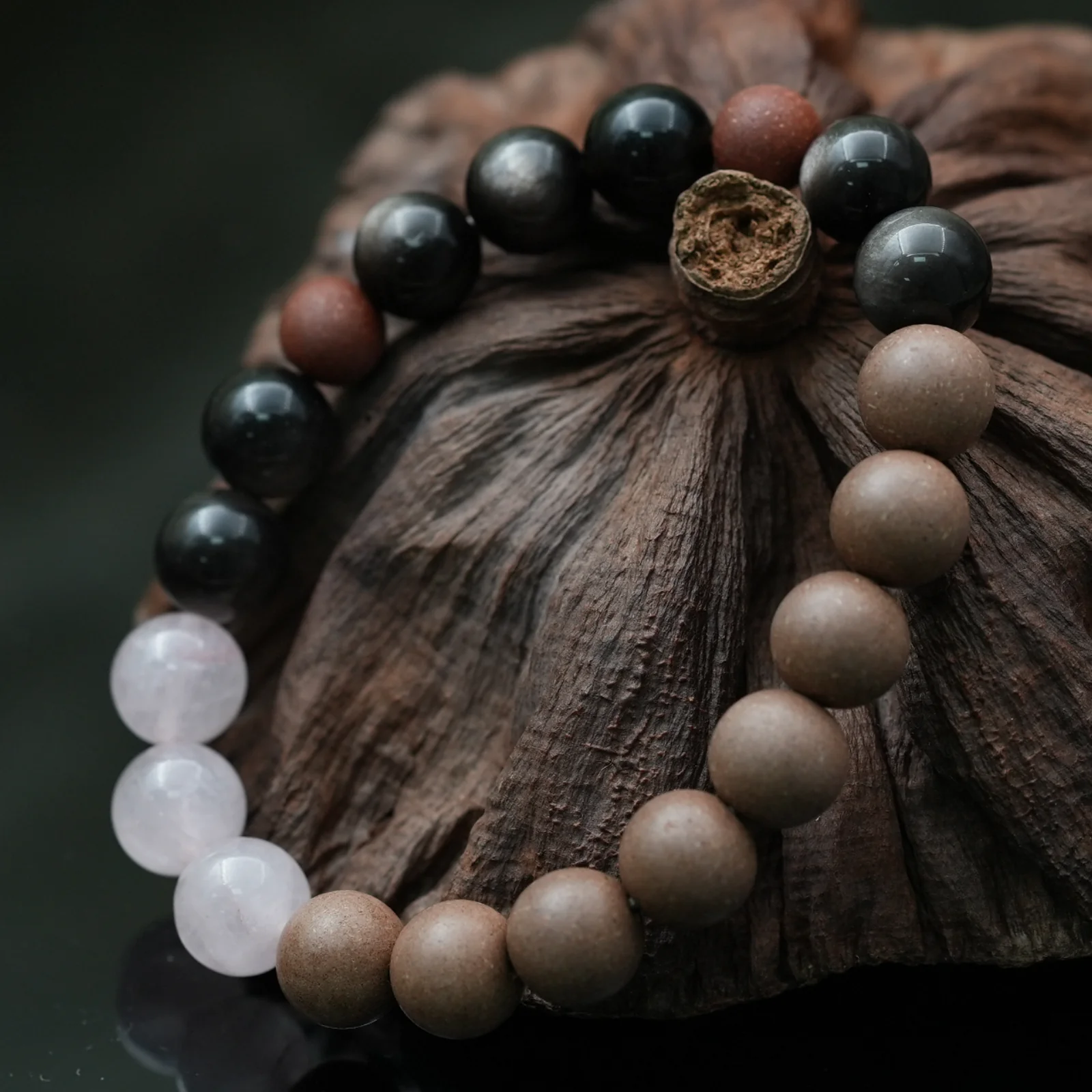Rose Quartz blooms your heart’s garden, Black Obsidian forges unbreakable trust, while dual sacred beads –Ambergris Snow(Longxian Xue)and Longevity Tribute from the Southern Pole(Nanjí Qingshou Xiang)-weave devotion through time. Wear your love’s living tapestry.