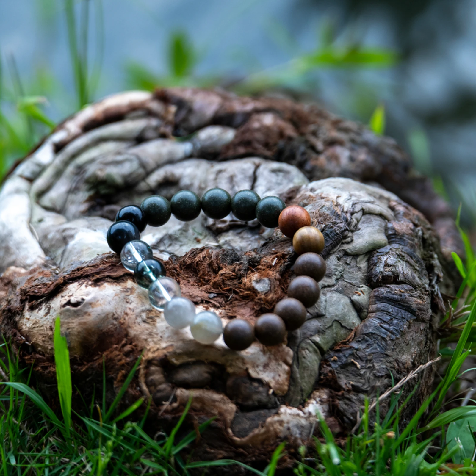 Moonstone sharpens your midnight intuition, Green Phantom Quartz turns crumbs into feasts, while Silver Obsidian and dual incense beads keep your brilliance one step ahead of the world.