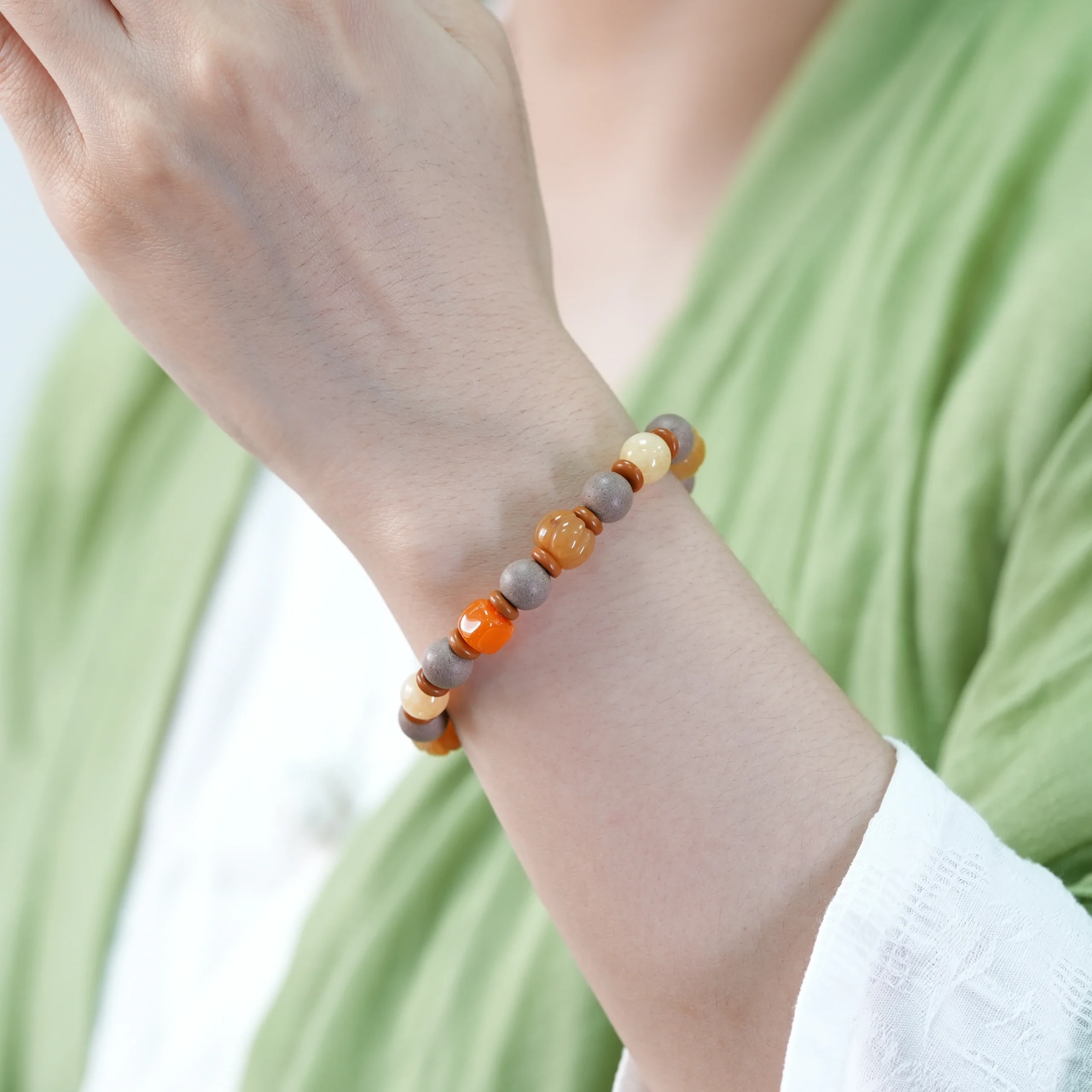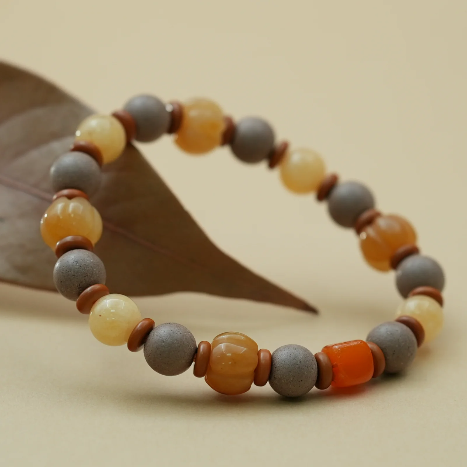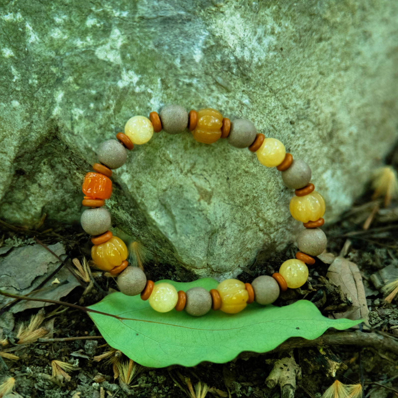 Materials:Refined Scent of the Western Study(Xizhai Yayi), Yellow Jade (Pumpkin-Cut), Orange Natural Stone, Light Yellow Natural Stone, Coconut Shell Spacer