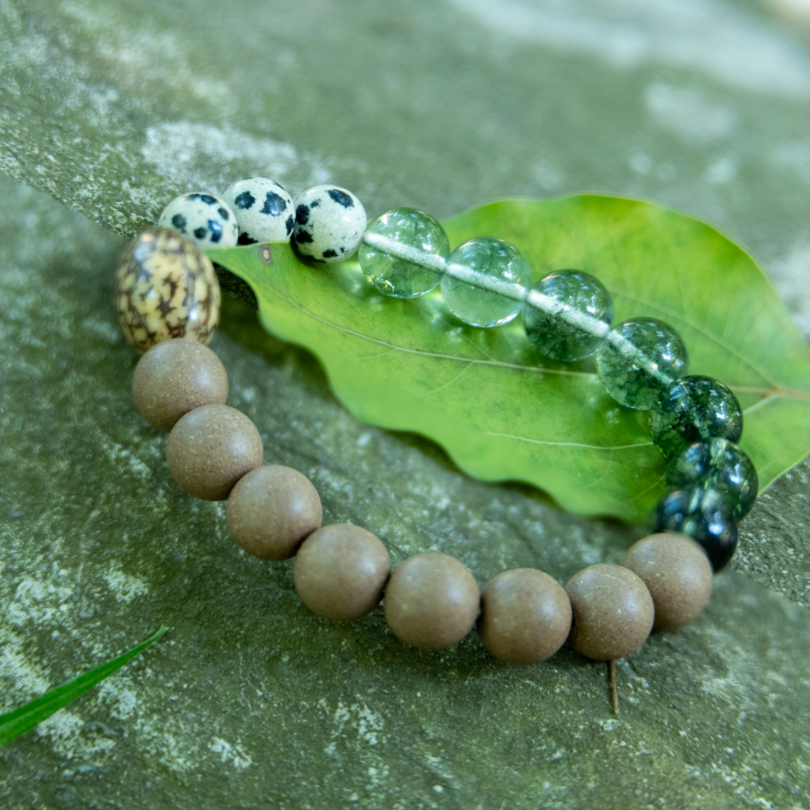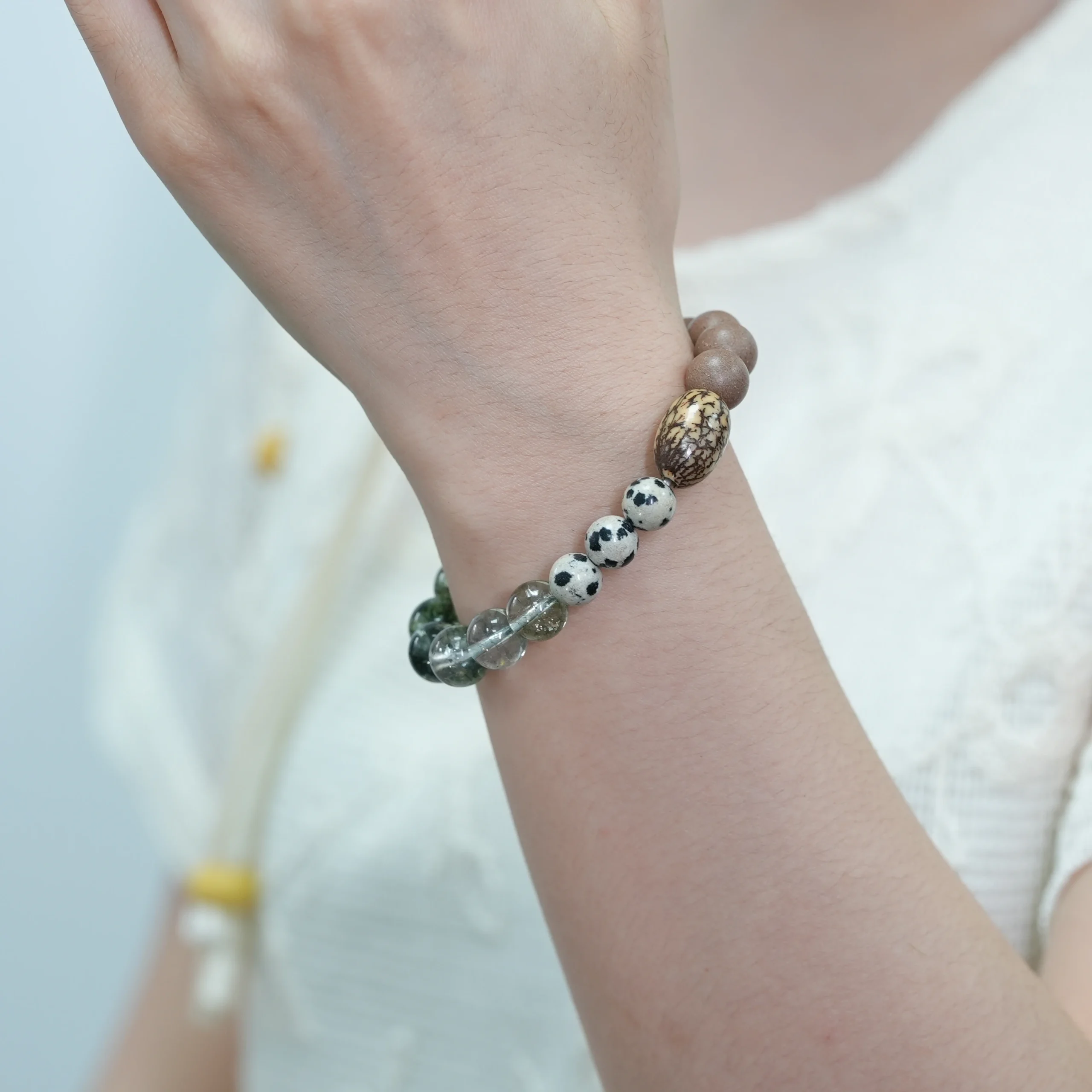 - Materials:Green Phantom Quartz,Spotted Stone Beads,Silver Line Bodhi,Ambergris Snow(Longxian Xue)